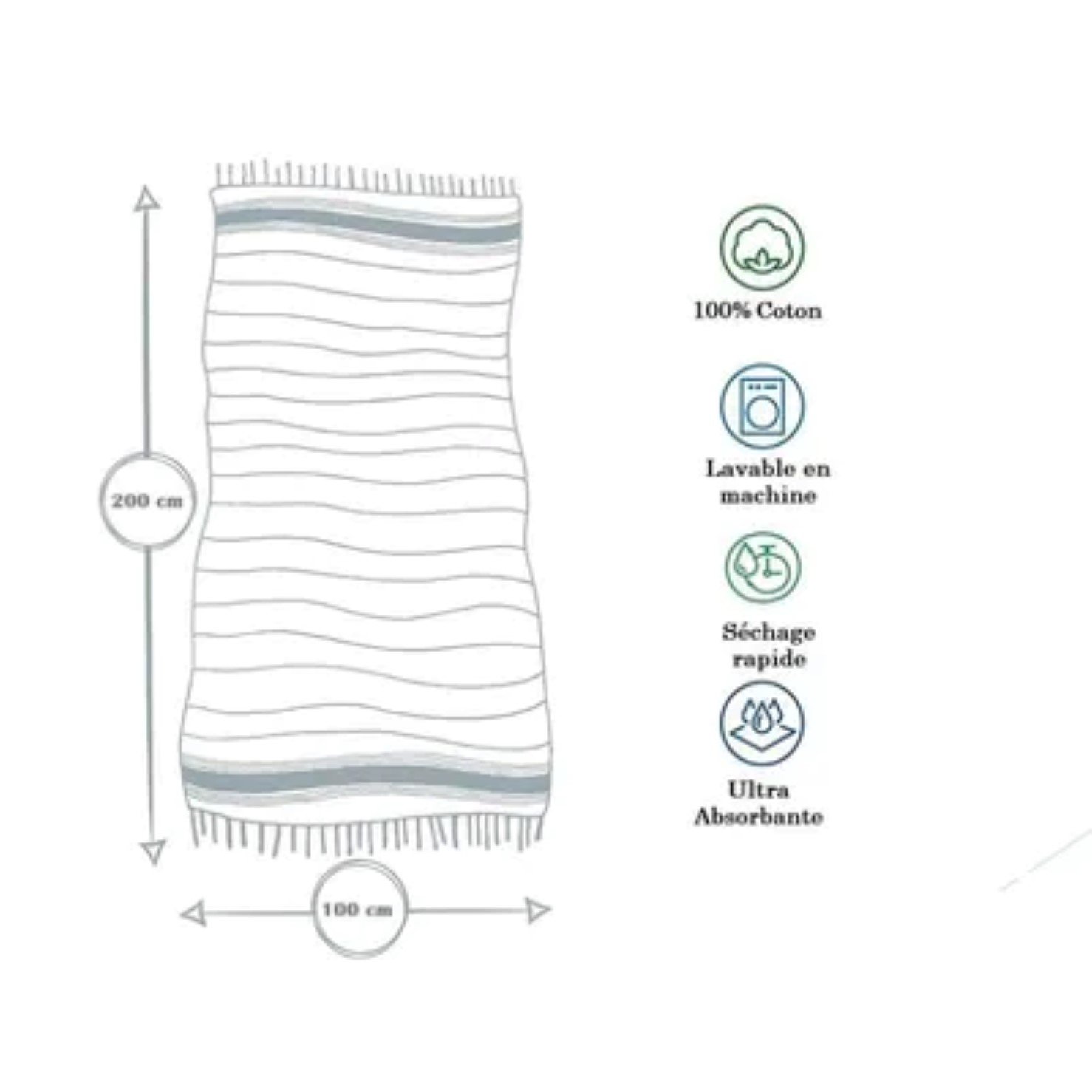Aussi, cette Fouta peut assurer plusieurs rôles. Elle peut être utilisée comme tapis de plage, couverture de camping, tapis familial, nappe, serviette de plage, tapis de yoga. Ainsi, elle n’est pas seulement destinée à un usage extérieur, elle sert également de tapis de sol, de tapis de jeu pour enfants, de housse de siège, nappe de table ou encore comme jeté de canapé / fauteuil.