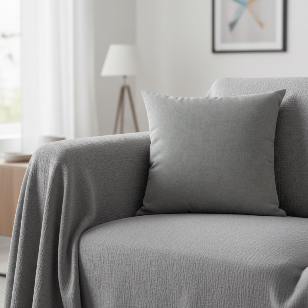 Housse de Coussin 45×45 – Gris Uni | Tissu Fouta