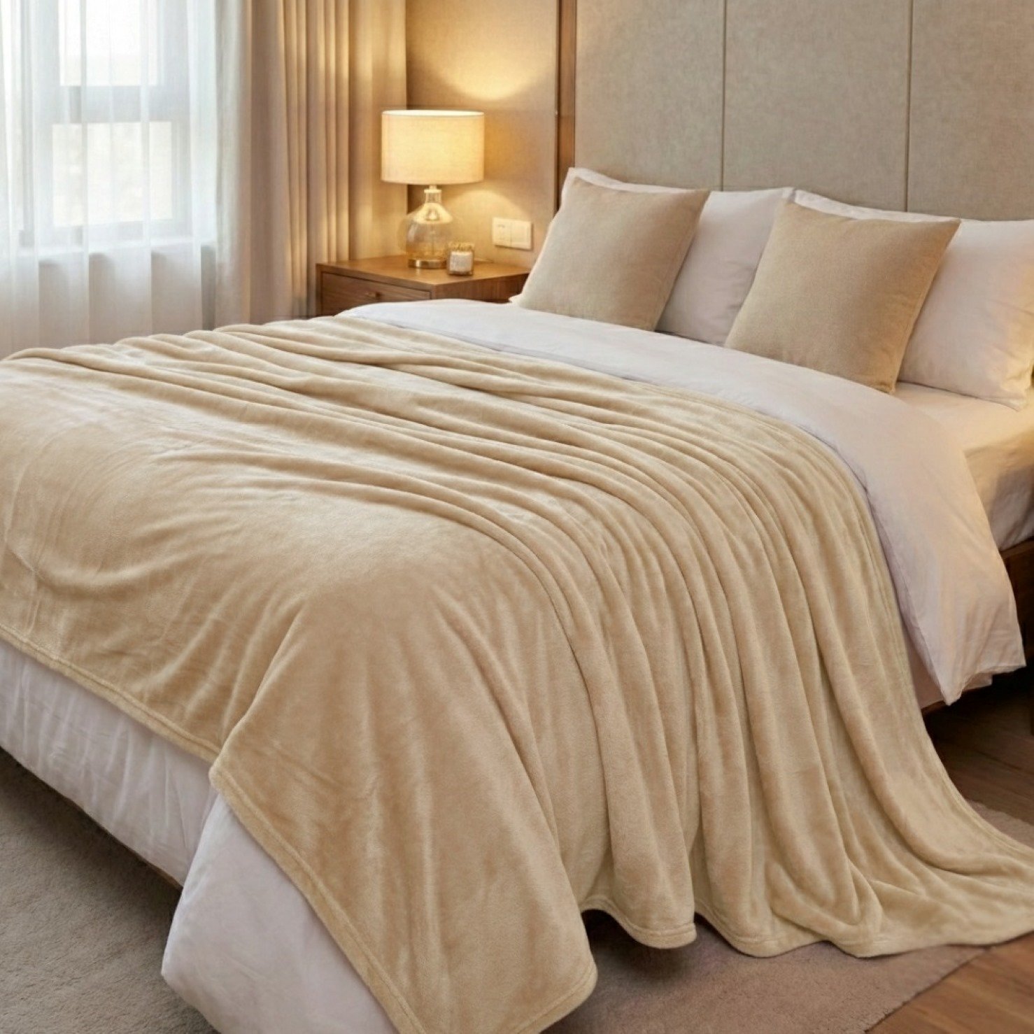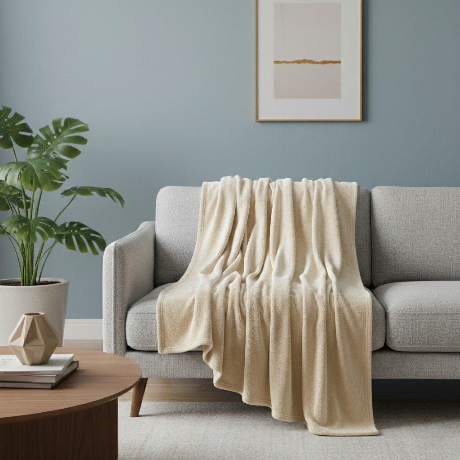 Profitez de la douceur et de la chaleur de ce plaid polaire beige, un incontournable pour se sentir bien chez soi tout au long de l’année.